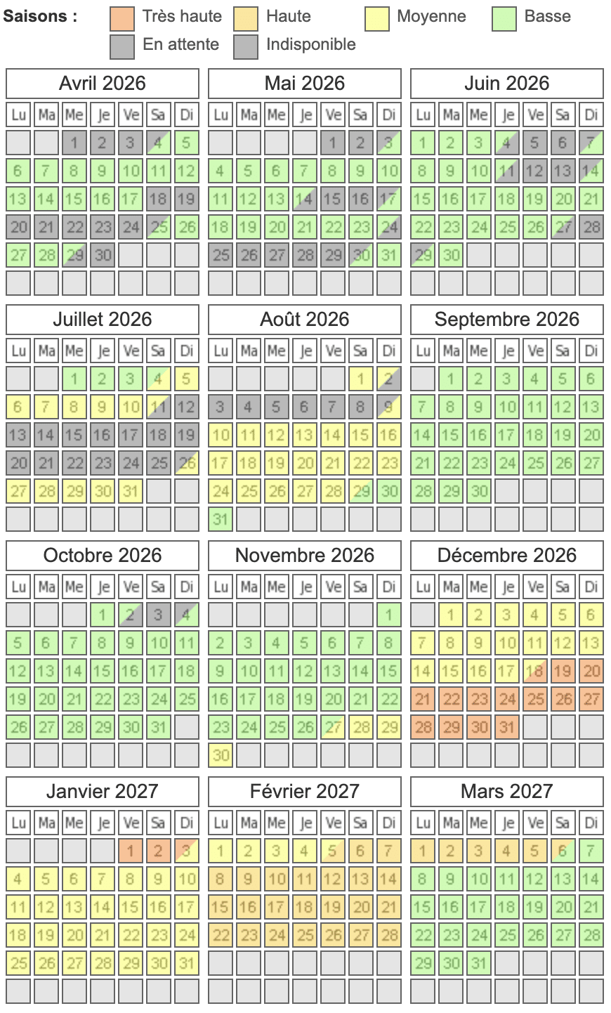 Le calendrier des réservations est régulièrement mis à jour.