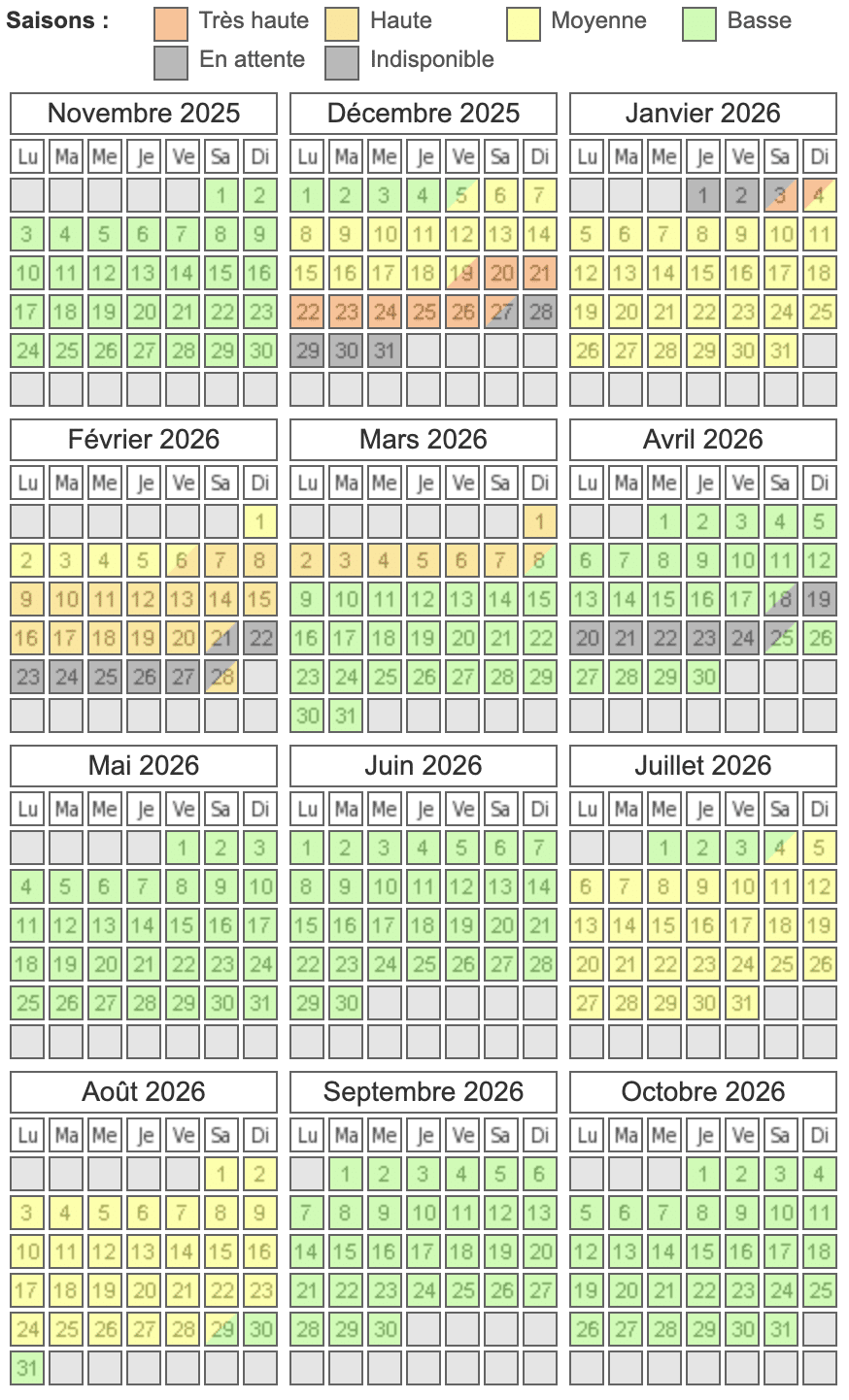Le calendrier des réservations est régulièrement mis à jour.