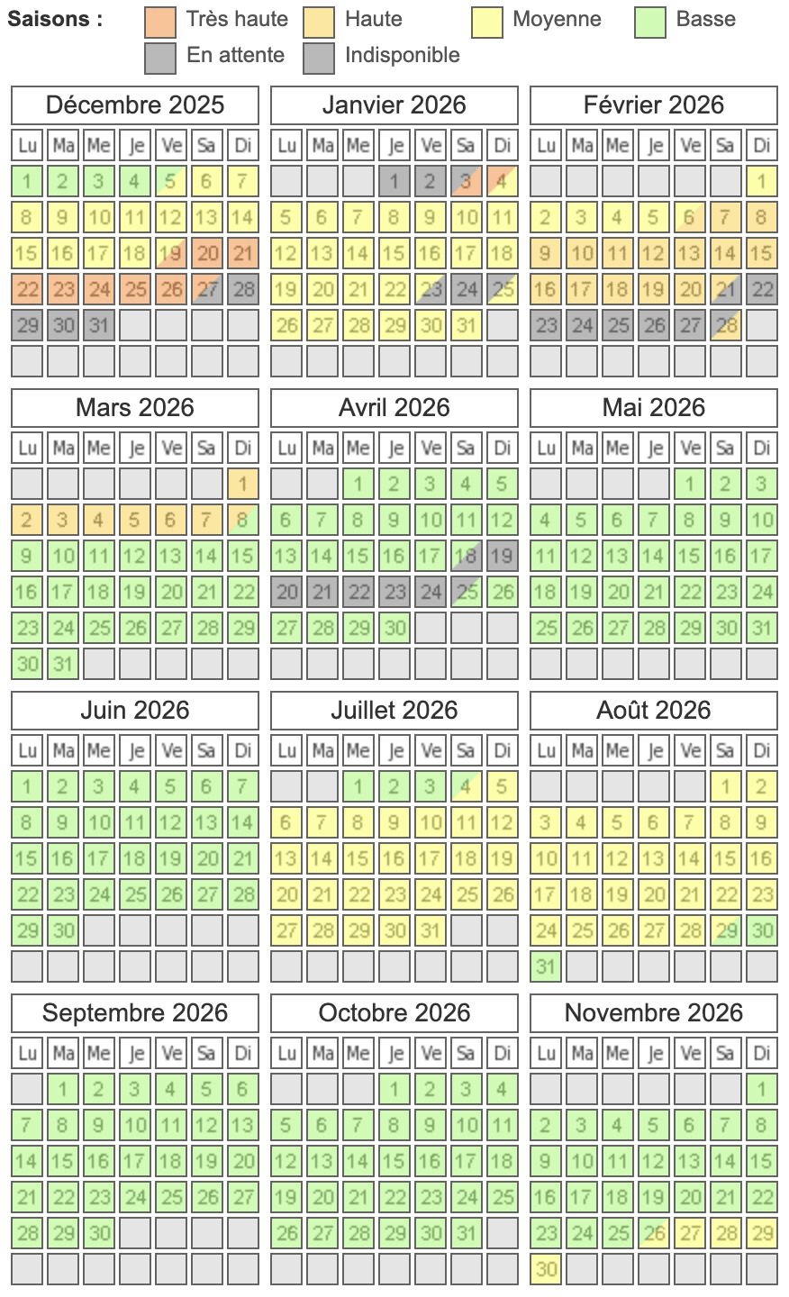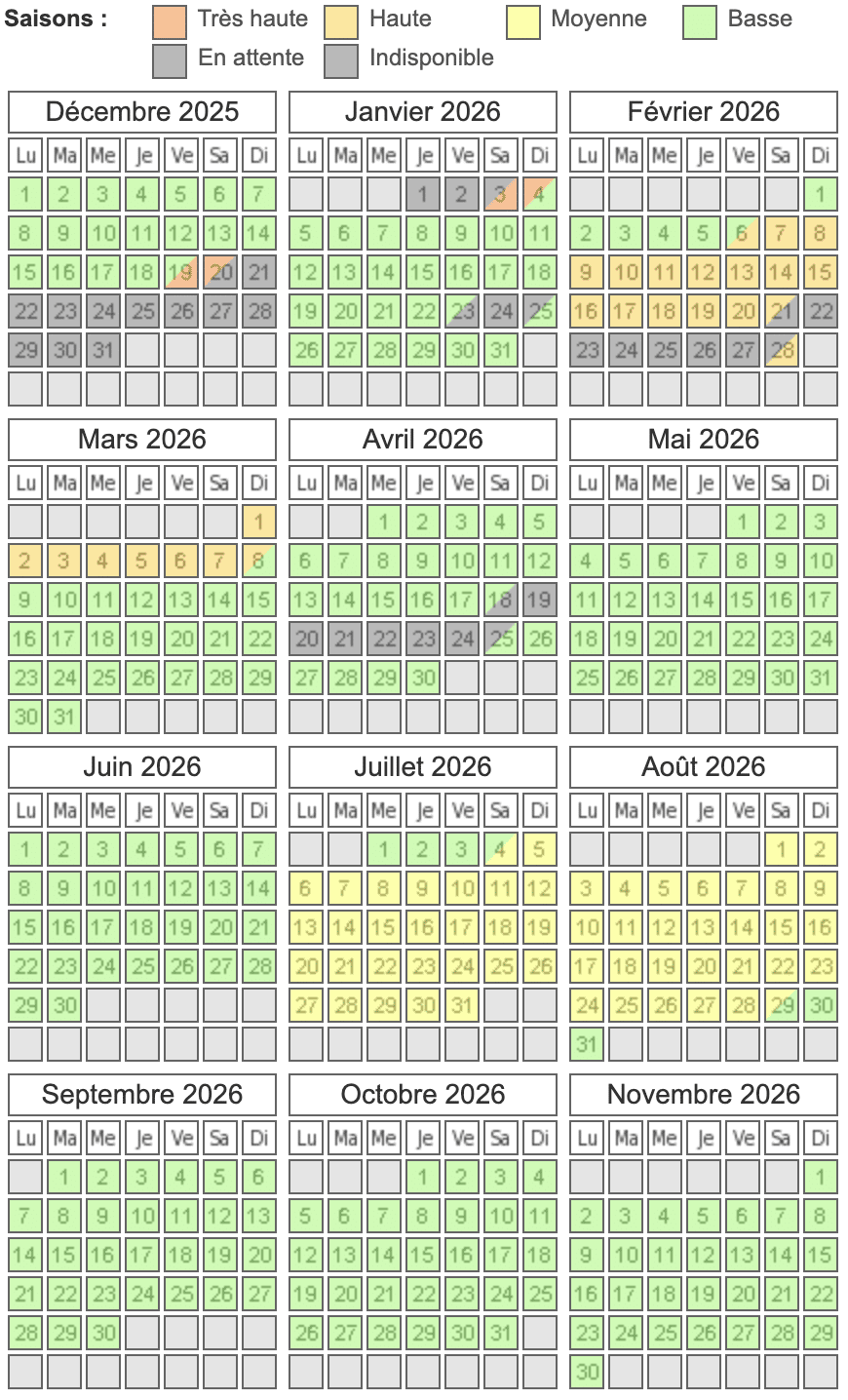 Le calendrier des réservations est régulièrement mis à jour.