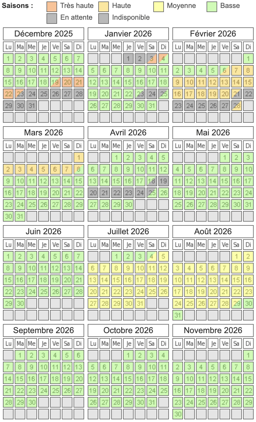 Le calendrier des réservations est régulièrement mis à jour.